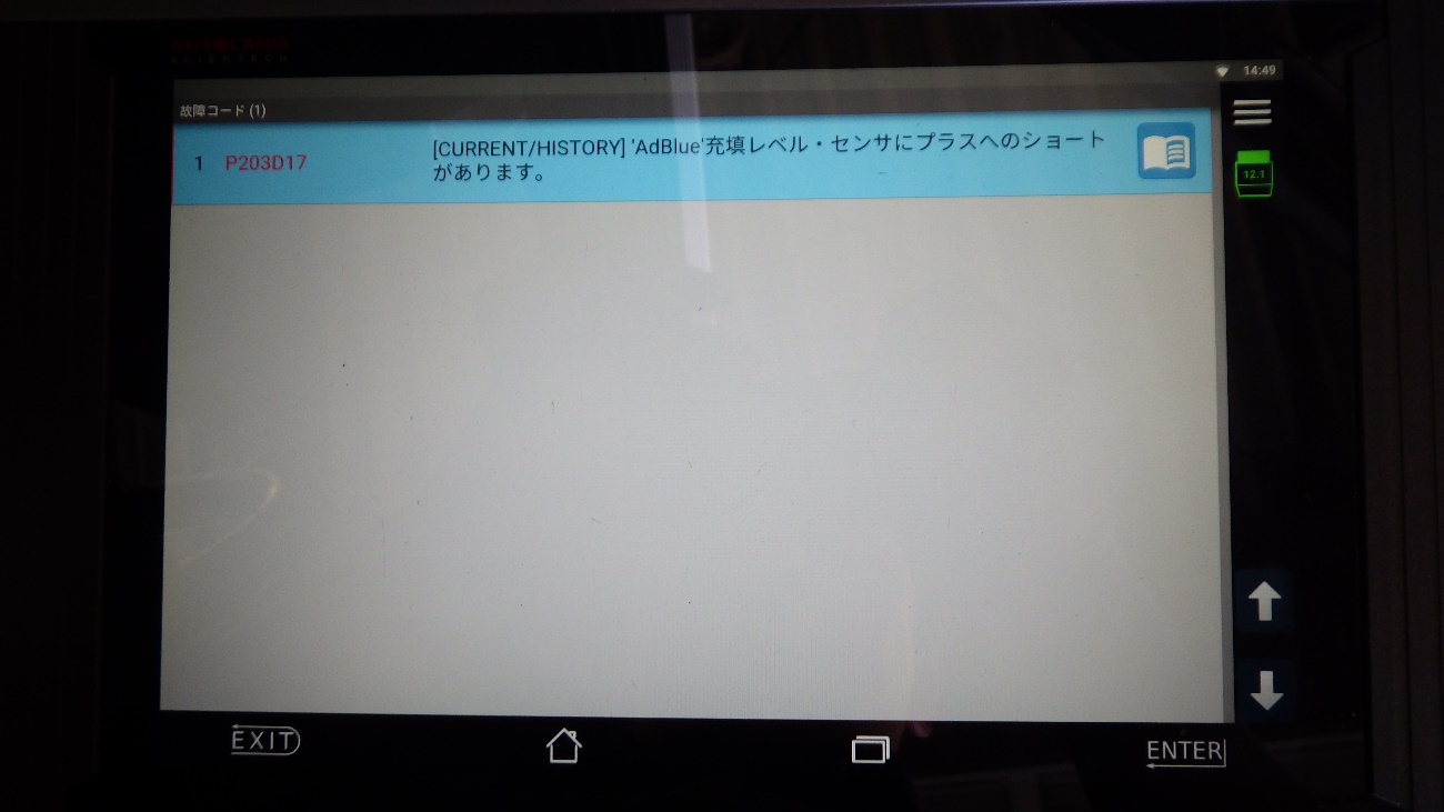 早速診断機で不具合を確認したら、エンジンECUにはエラーが入っておらず、アドブルーに関するエラーが表示されておりました。