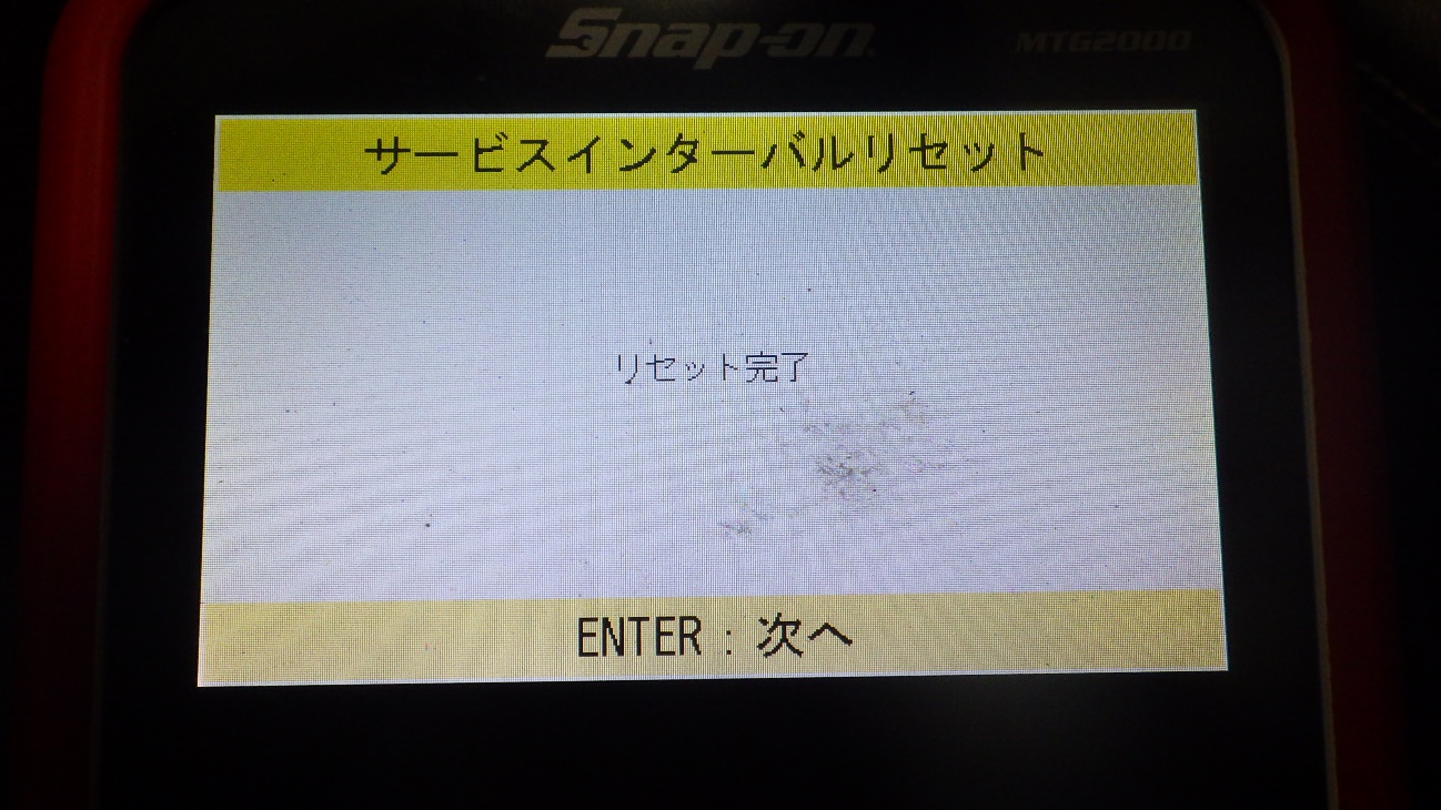 テスターにて故障コードの確認と、サービスのリセットを実施しています。