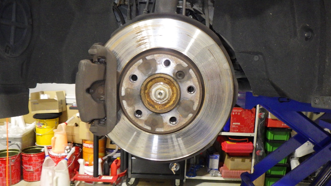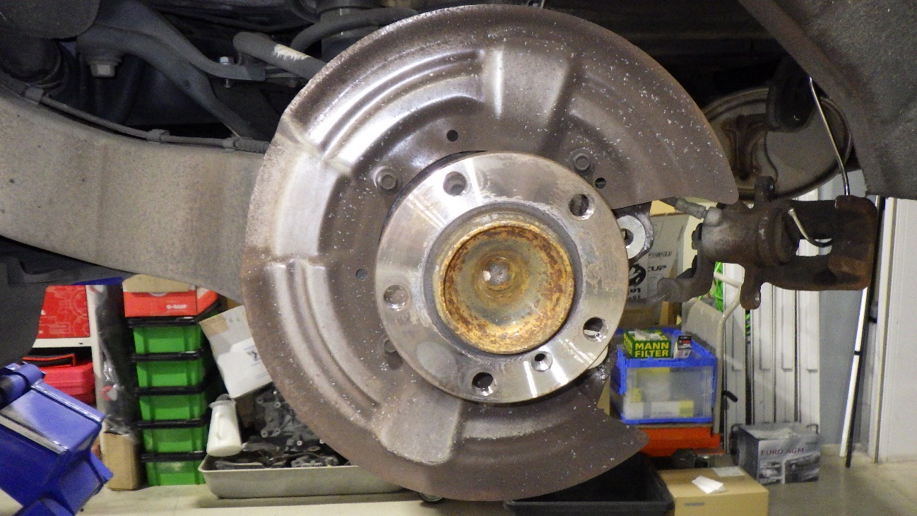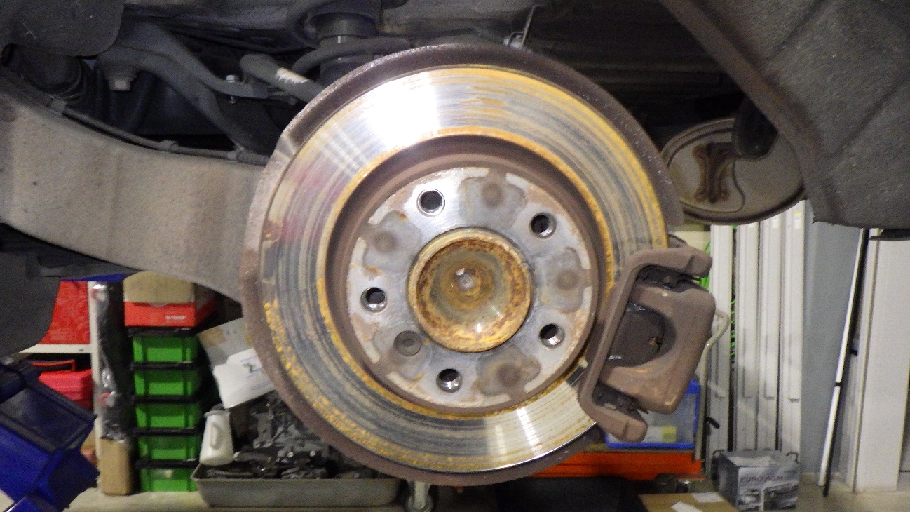 ブレーキパッド、ローターを取り外した様子です。