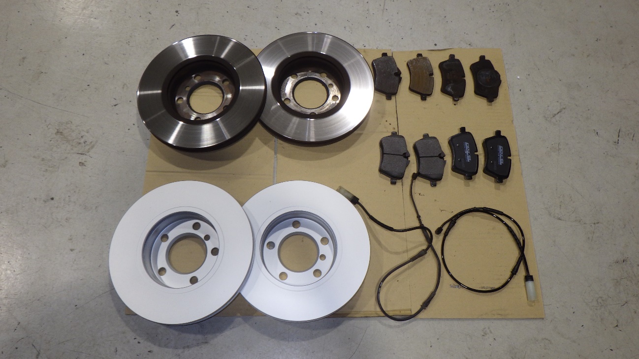フロントのブレーキパッド、ローター、パッドセンサーです。