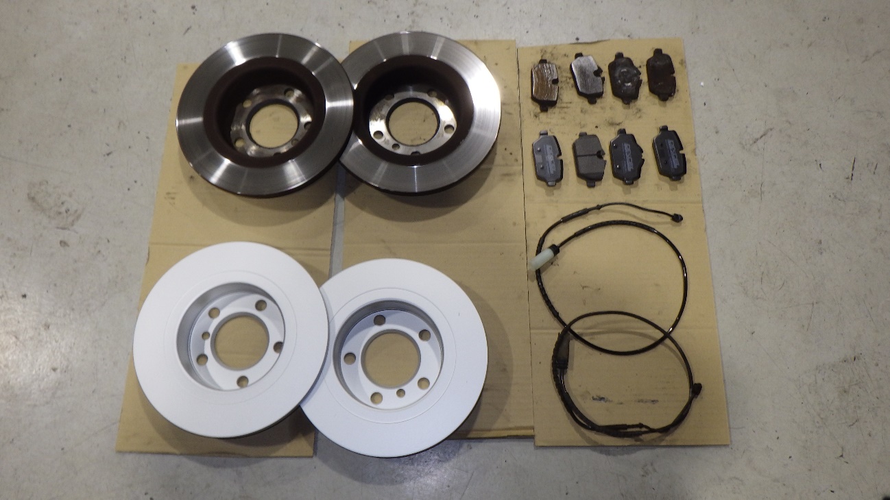 リアのブレーキパッド、ローター、パッドセンサーです。
