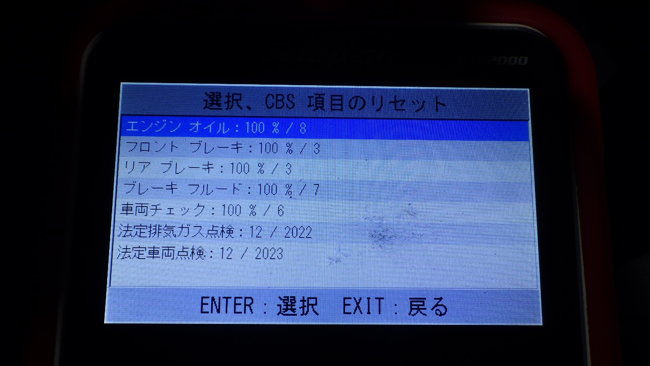 テスターにて故障コードの確認と、サービスのリセットを実施しています。