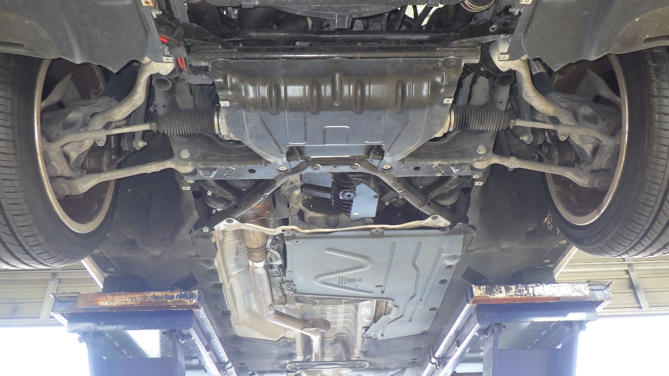 リフトアップを行い、フロント側の下廻りの様子になります。