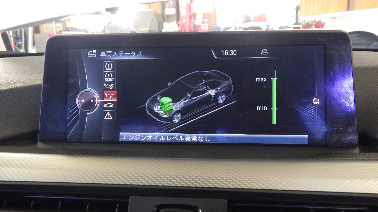 エンジンオイル量をモニターにて確認しております。