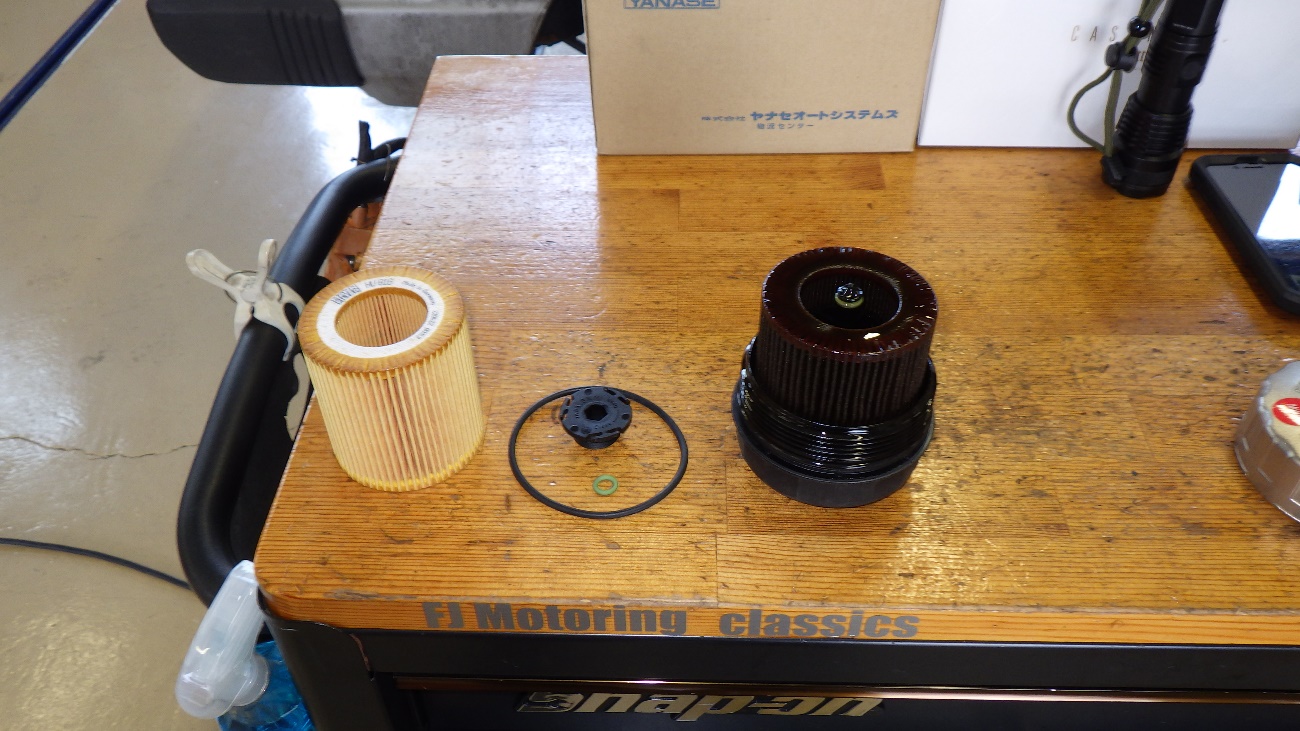 エンジンオイルフィルターを取り外した状態になります。
