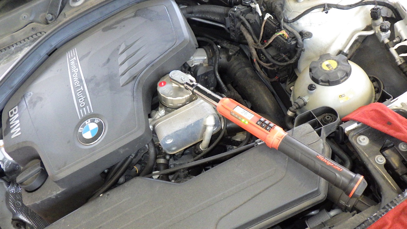 エンジンオイルフィルターの交換後、規定トルクにて締め付けております。