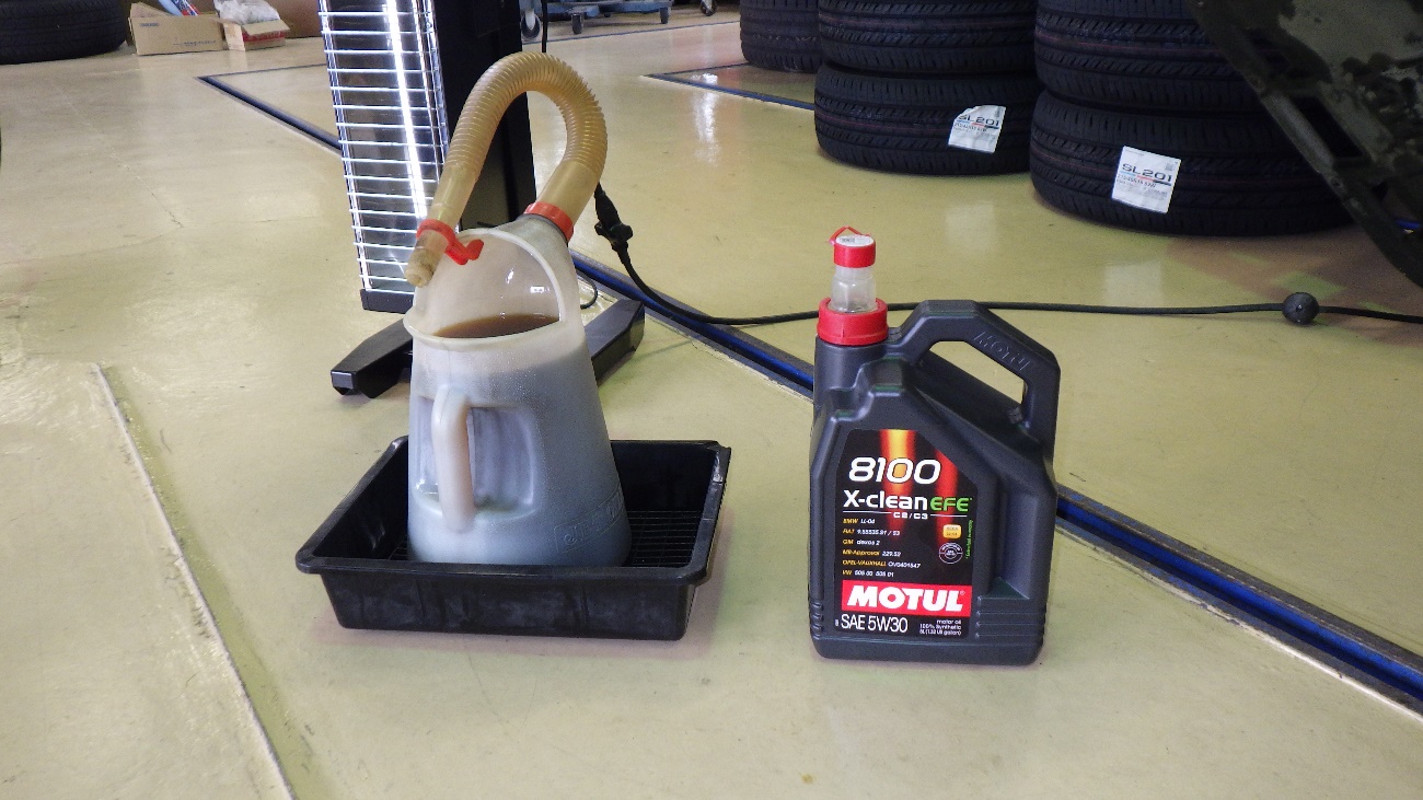 エンジンオイルの交換様子になります。
