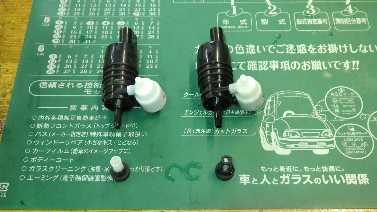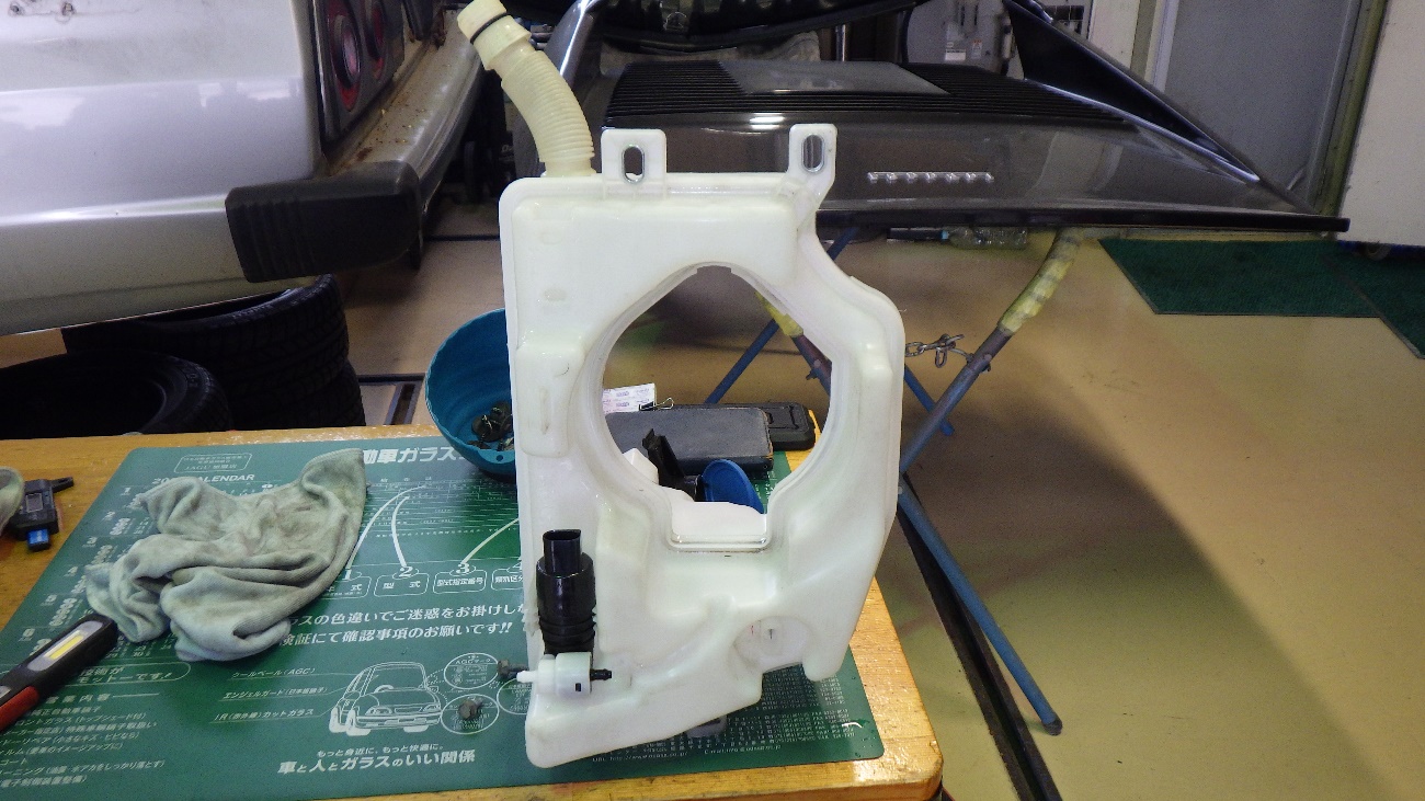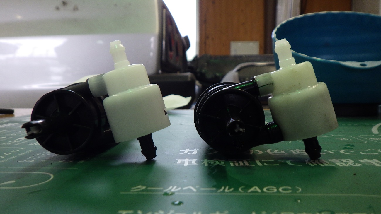 今回ウォッシャー液漏れを起こしておりましたのでポンプの交換を行っております。
