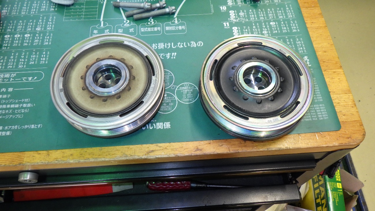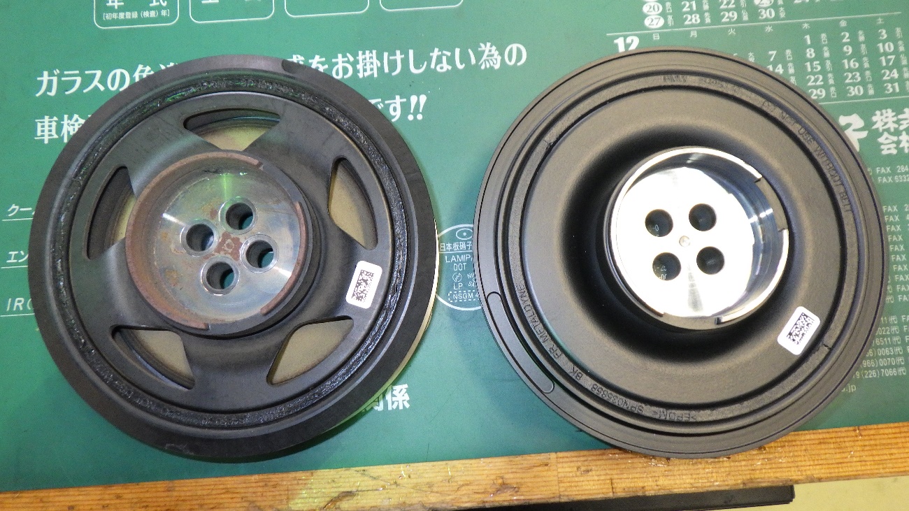 次に、バイブレーションダンパー(クランクプーリー)にガタがございましたので、