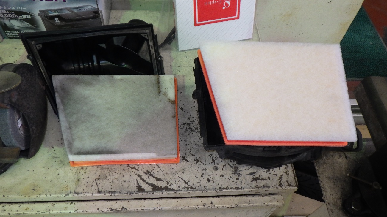 新旧比較したエアクリーナエレメントの様子になります。