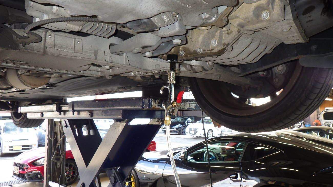 排出後、新しいオイルを圧送方式で補充して参ります。