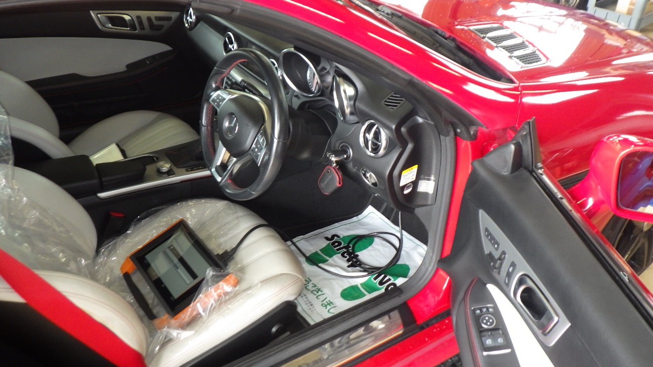 フロント足廻り損傷でのお預かりになります。 入庫後、入庫確認作業を行い、キズ、汚れ防止の為、ハンドルカバー、 シートカバーの取り付けを行いました。 入庫確認の後…