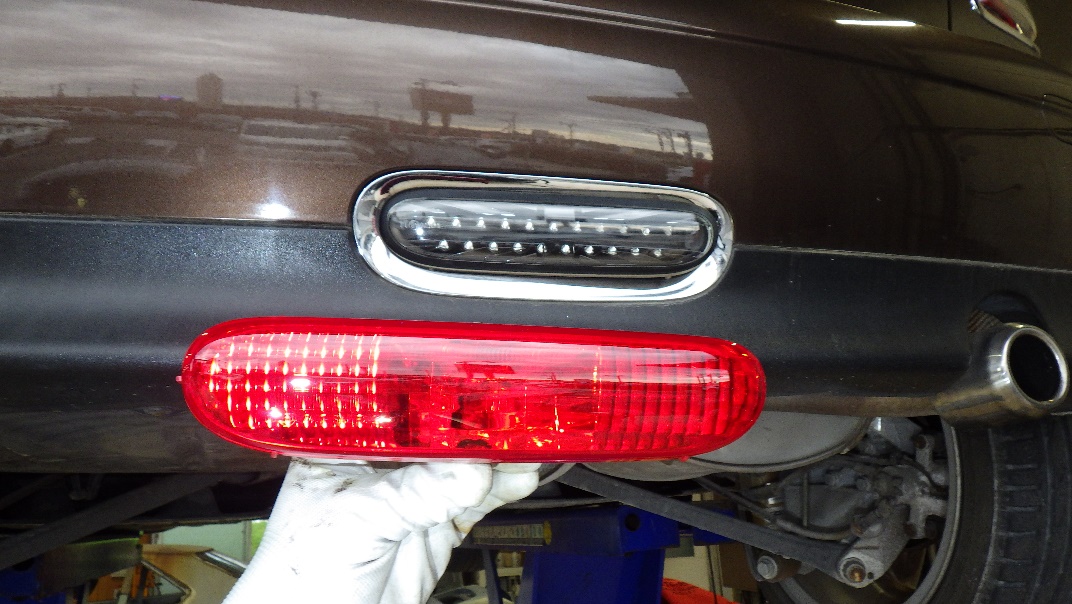 まず灯火類の点検を行いましたが、リヤフォグランプが点灯しなかったため