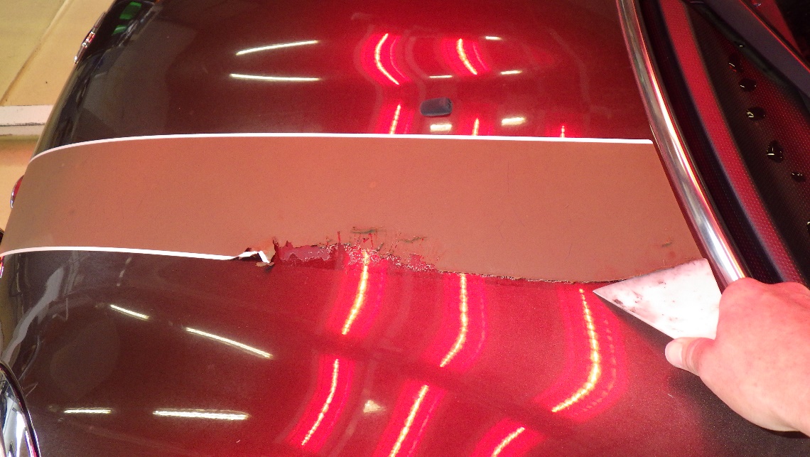 加熱後ヘラや手作業でストライプを剥がしていきました。