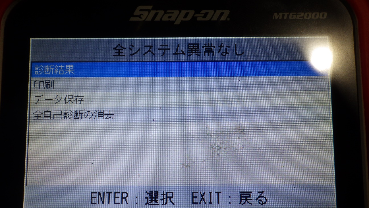 テスターにて故障コードの確認と、サービスのリセットを実施しています。