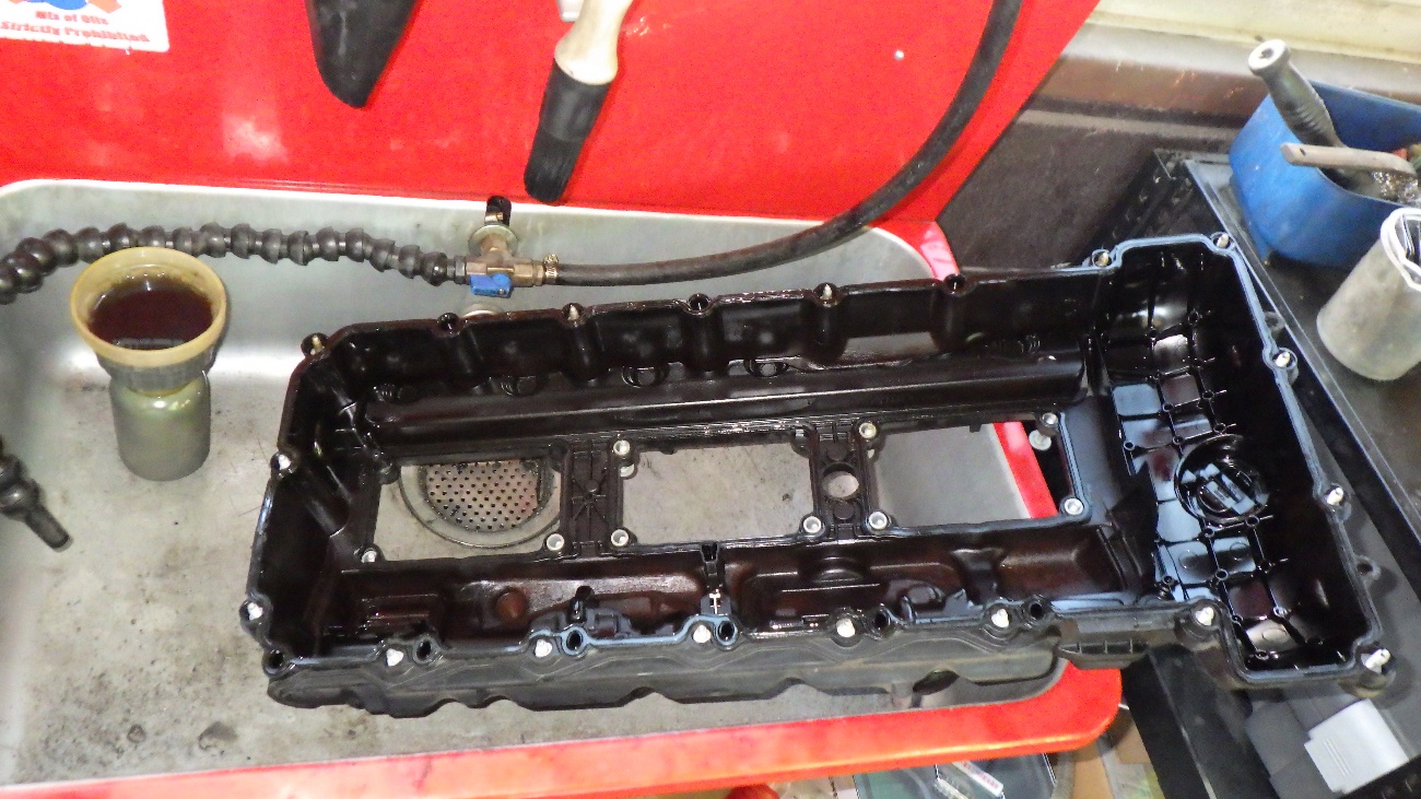 エンジン側もタペットカバーガスケットが接する部分及びオイル飛散している箇所を