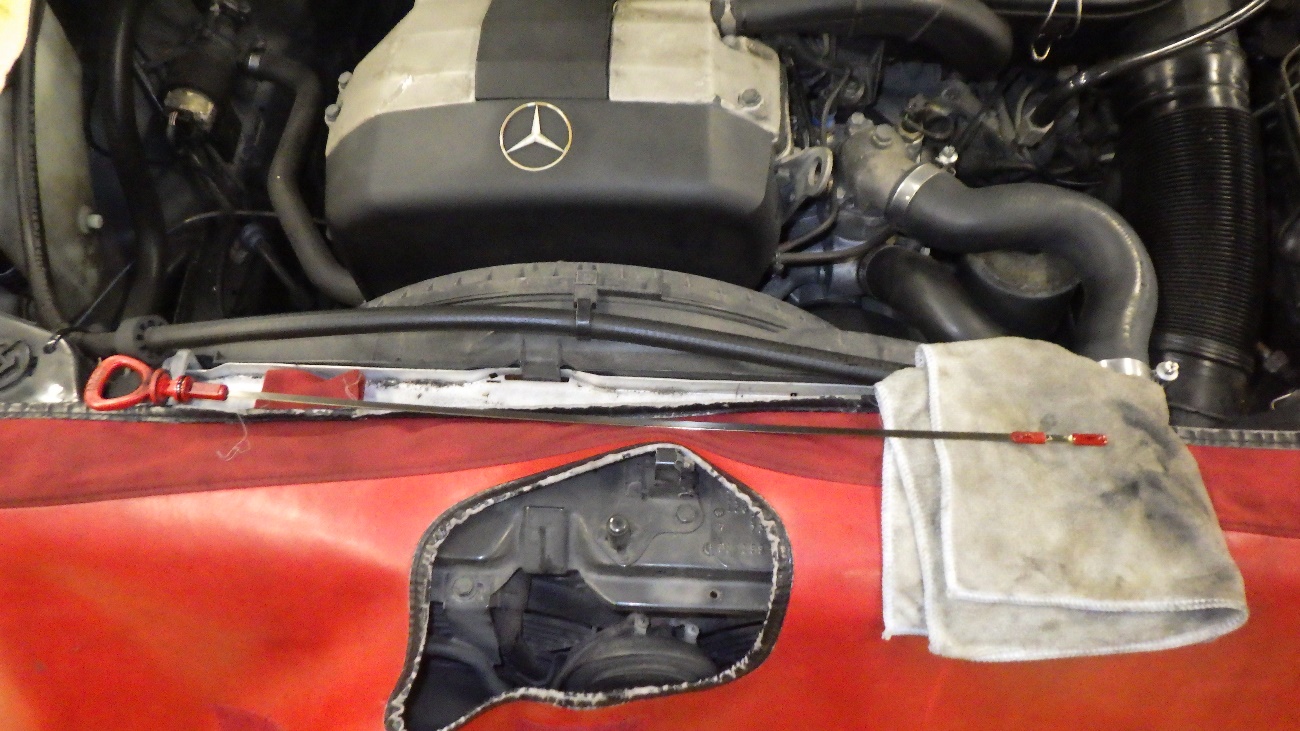 エンジンオイル交換後、レベルゲージにてオイル量を調整しております。