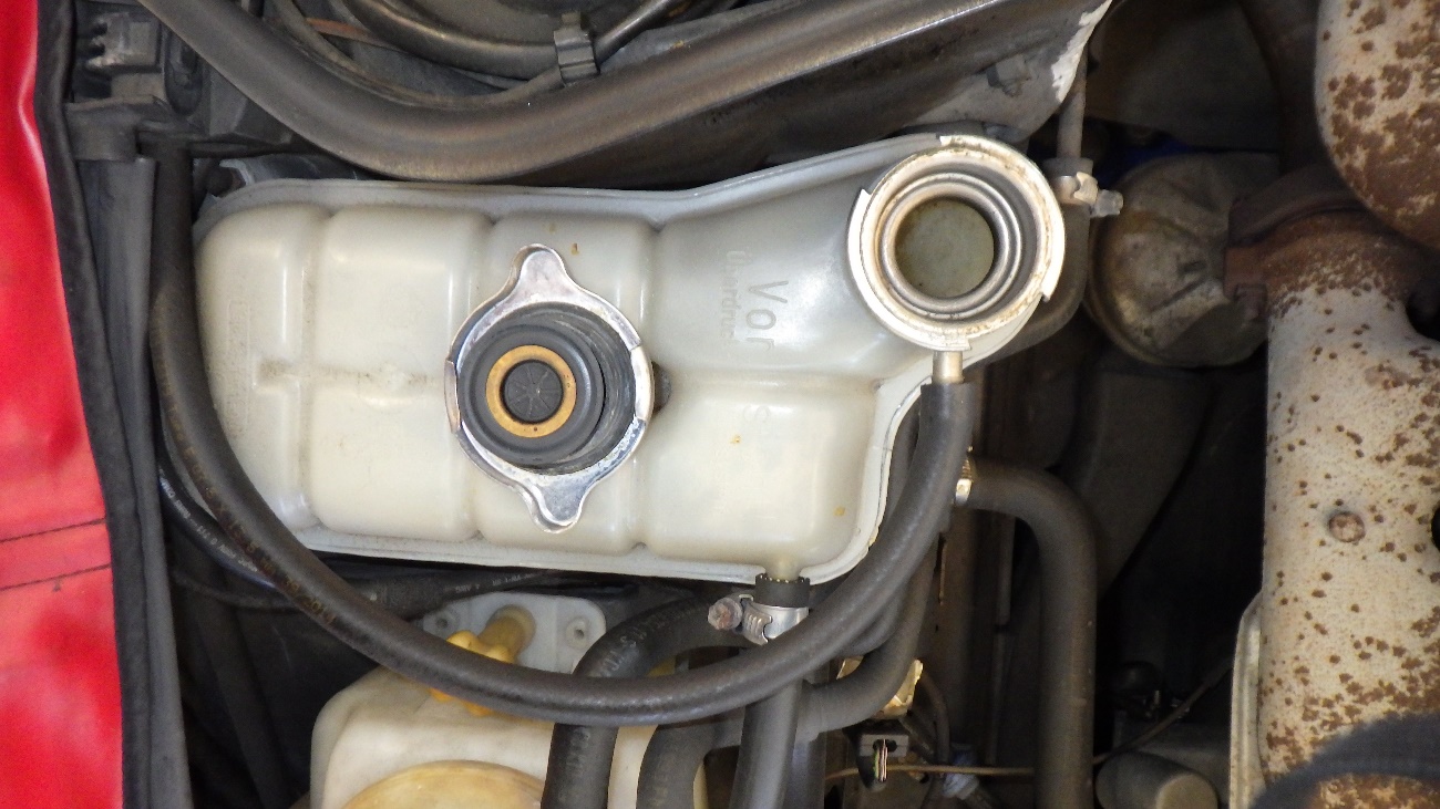 クーラントのサブタンクが空の状態でした。補充後、加圧テスト実施致しましたが漏れ等は無く、一度も補充をされていないとお客様からお伺いしたので、