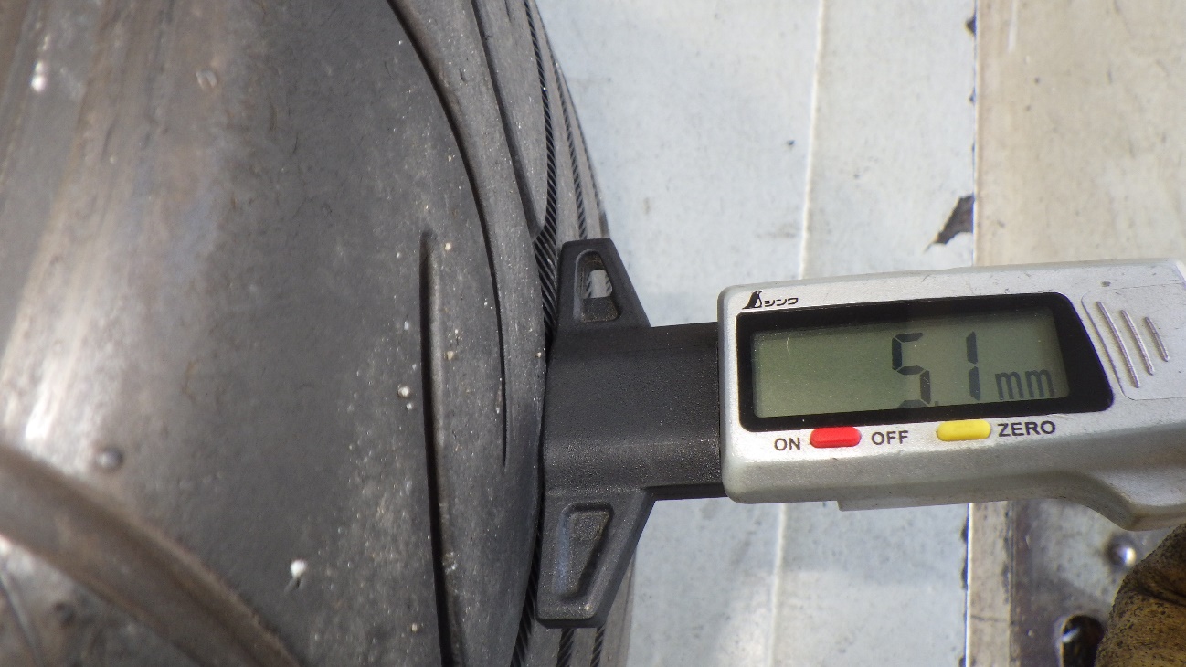 リヤタイヤ残量は約5.1mmです。