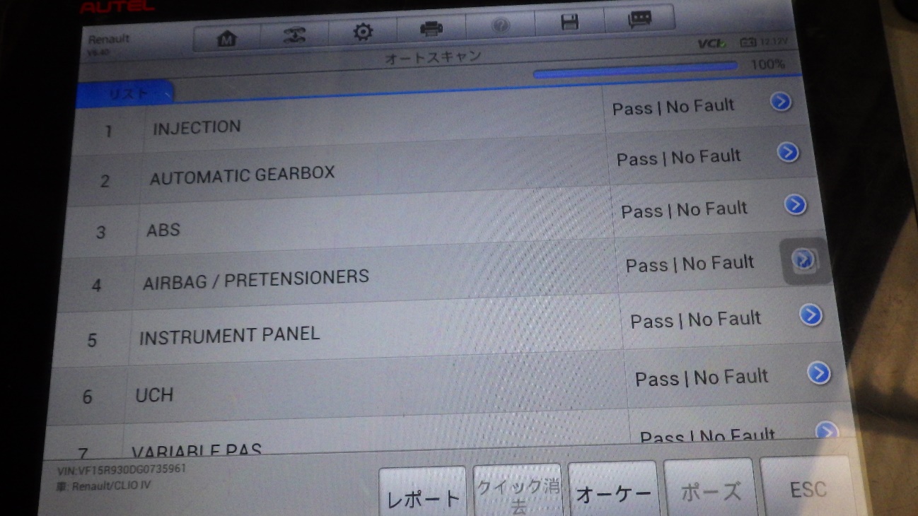 故障コードはありませんでした。