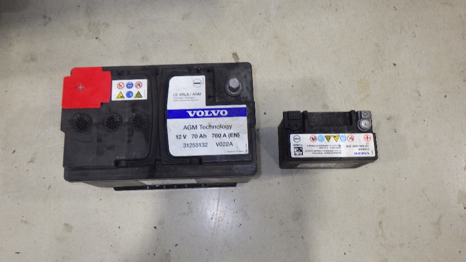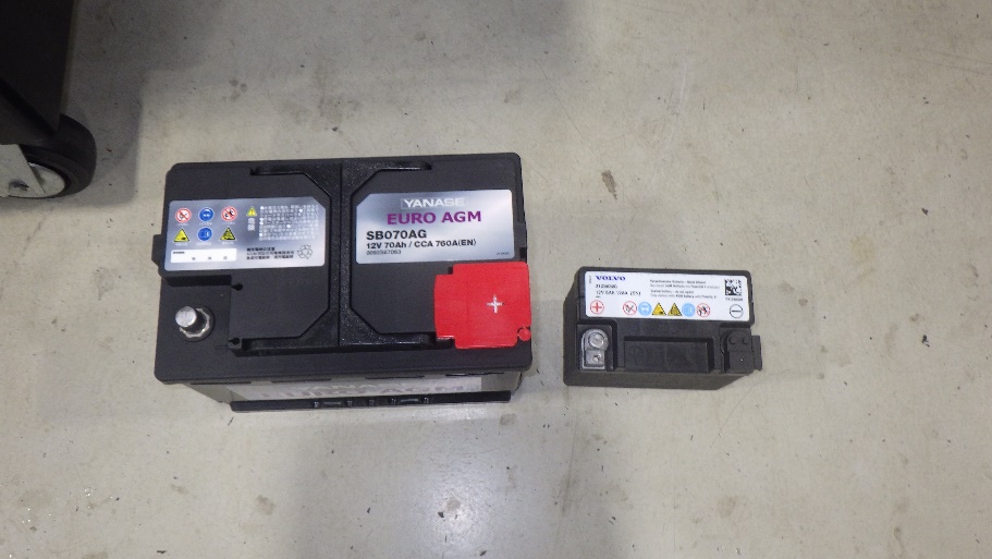 写真下側が新品メイン・サブバッテリー、上側が取り外したものになります。