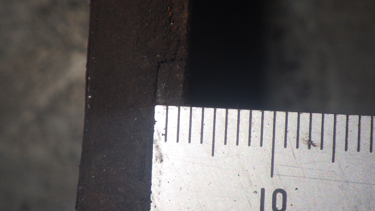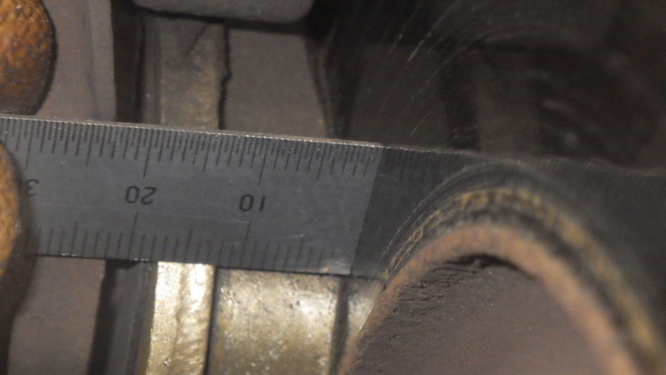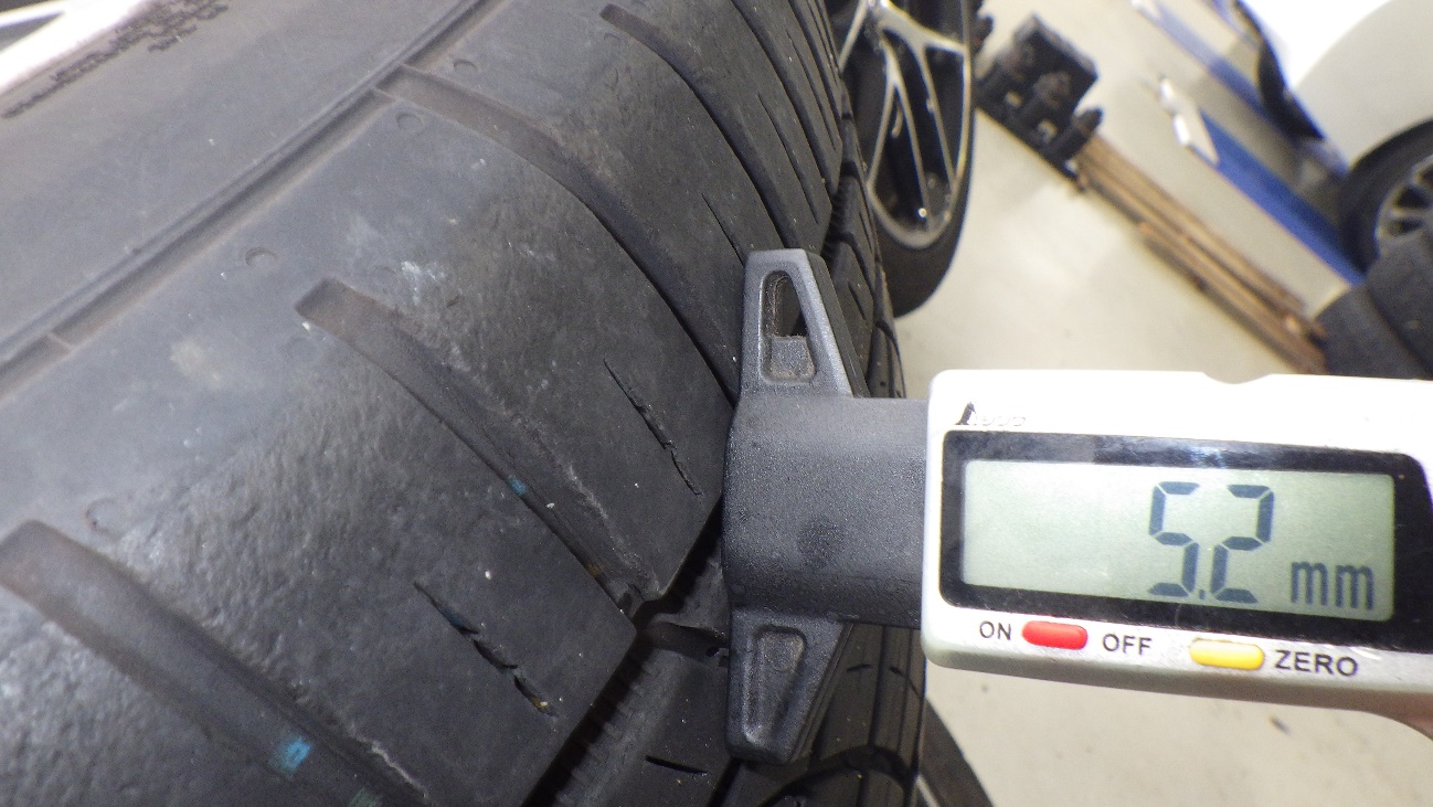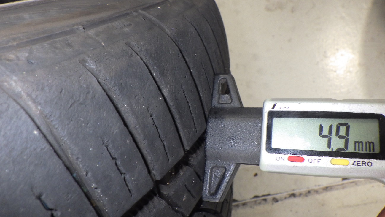交換前のリヤブレーキパッド残量は約2.0mmです。