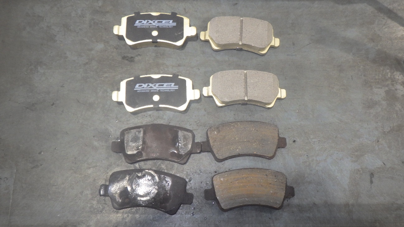 取り外したブレーキパッド(写真下側4枚)と新品です。