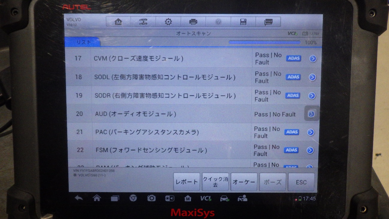 テスターにて故障コードの確認と、サービスのリセットを実施しています。
