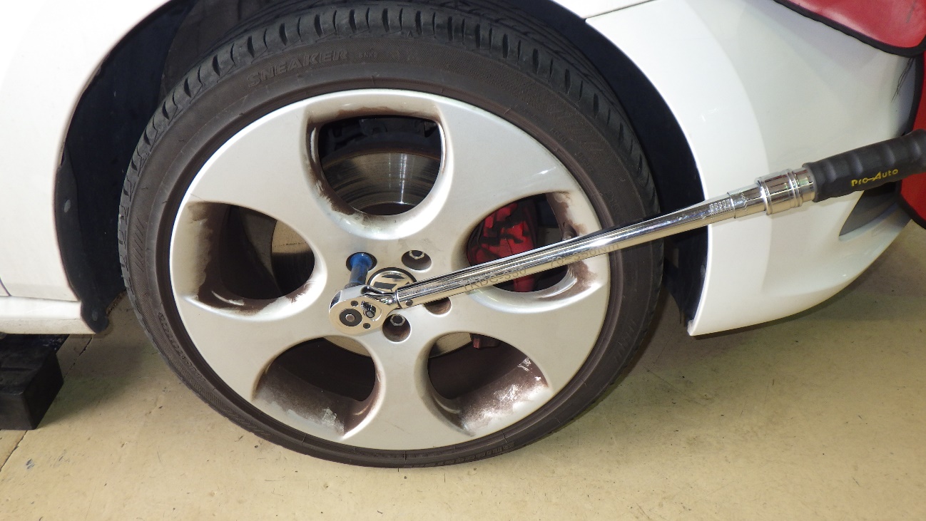 作業に際し取り外したホイールもトルクレンチを使用しボルトを締め付けています。