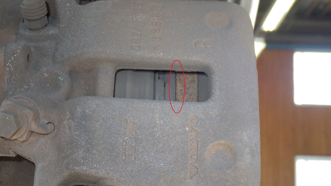 オイル漏れはありませんでしたが、ブレーキパッドの偏摩耗がありました。