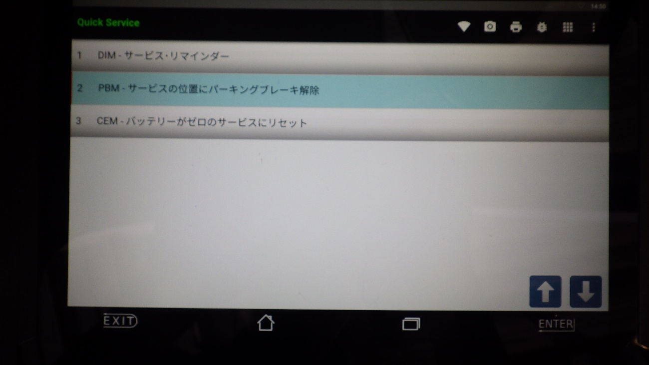 テスターを使用してパーキングブレーキの解除を行っている様子になります。