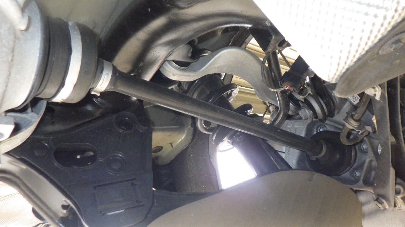 フロント側のドライブシャフト、ステアリングラックブーツの様子になります。