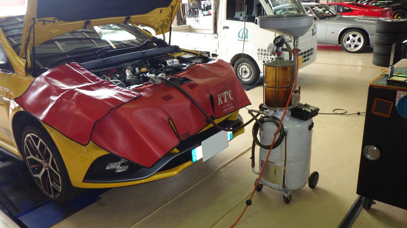 エンジンオイルの交換様子になります。