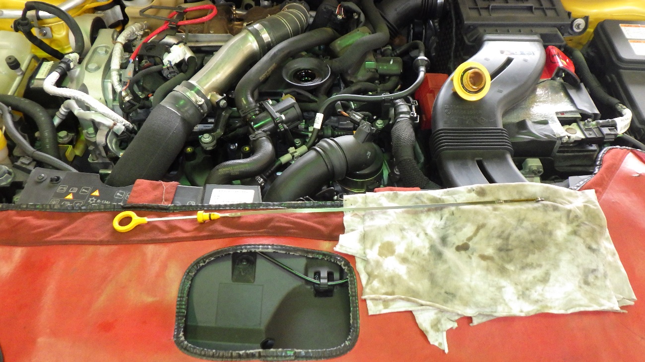 エンジンオイル交換後、レベルゲージにてオイル量を調整しております。