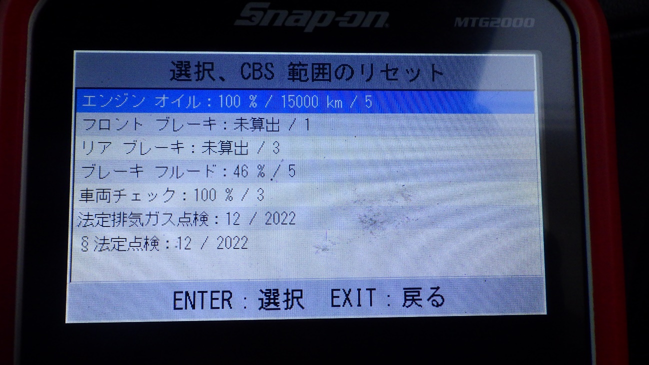 テスターにて故障コードの確認と、サービスのリセットを実施しています。