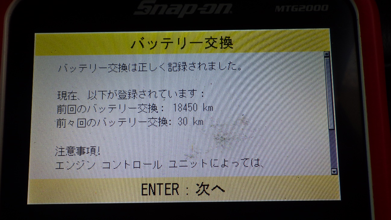 交換後テスターにてバッテリーの登録を行っております。