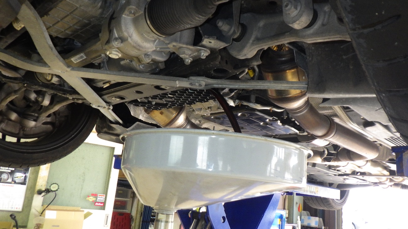 ATF排出後オイルパン内に溜まっているオイルも取り外して排出して参ります。