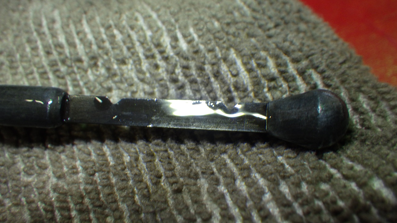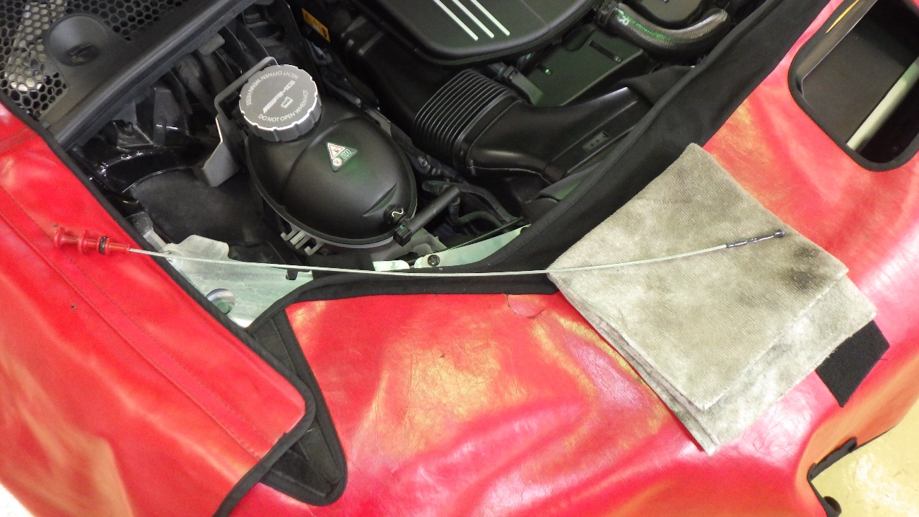 エンジンオイル交換後、エンジンオイルをレベルゲージにて