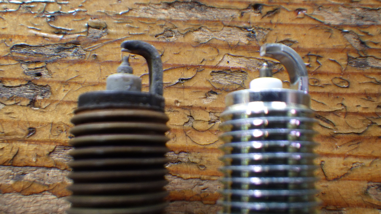 スパークプラグの先端部になります。気になる不具合は無く、相応の焼け具合でした。