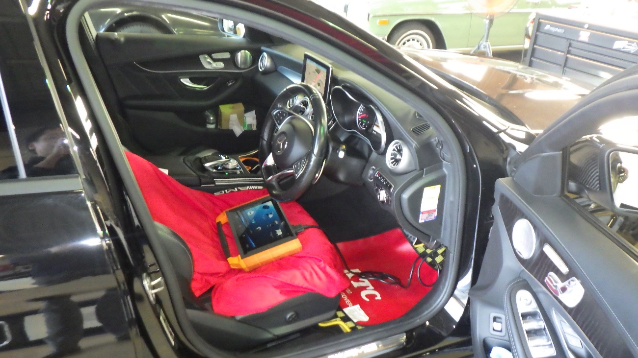 フロント足廻り損傷でのお預かりになります。 入庫後、入庫確認作業を行い、キズ、汚れ防止の為、ハンドルカバー、 シートカバーの取り付けを行いました。 入庫確認の後…