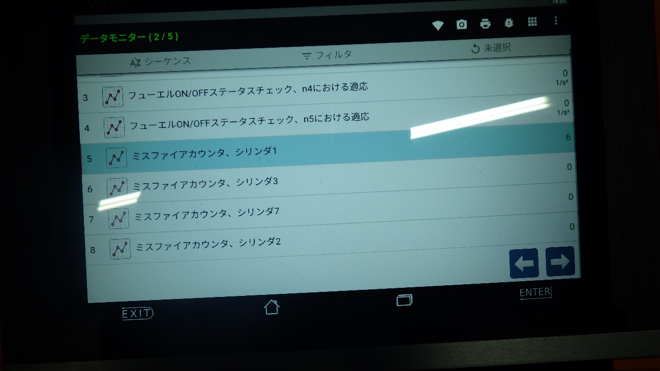 こちらは1~4シリンダーです。2番シリンダーにミスファイアの入力がありましたので