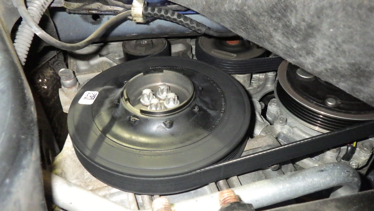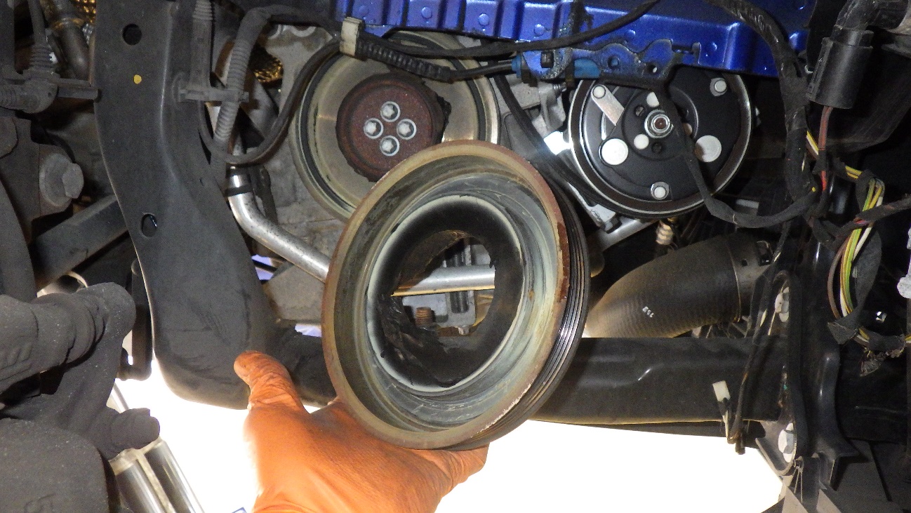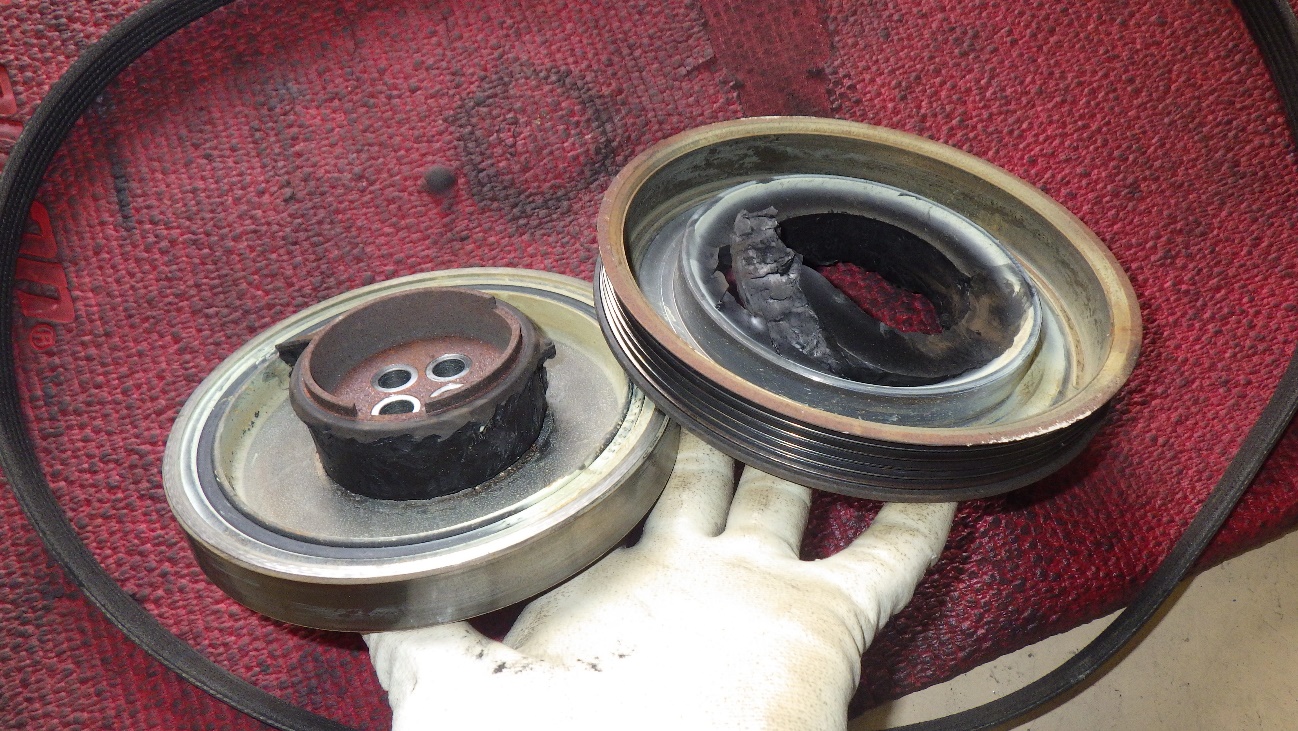 アンダーカバーを取り外すとクランクプーリーが破損、脱落していました。