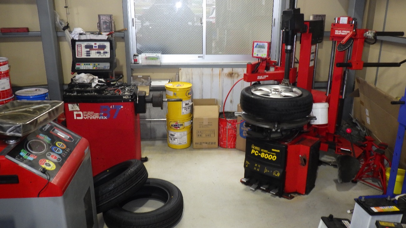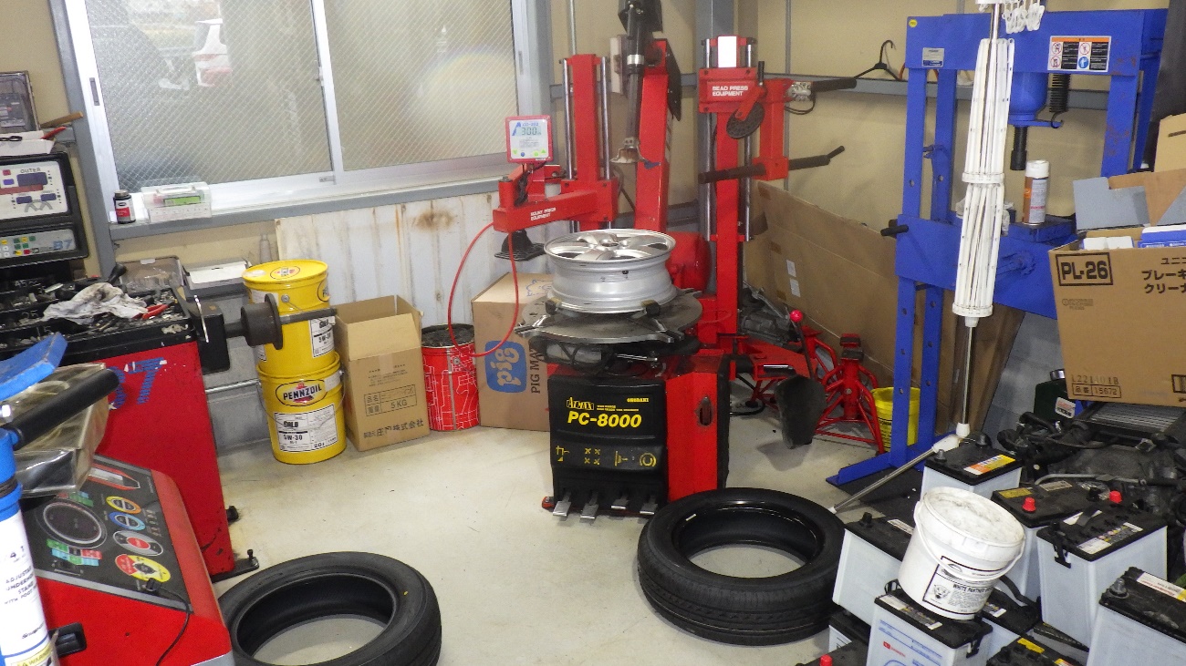タイヤチェンジャーで新しいタイヤに交換させて頂いております。