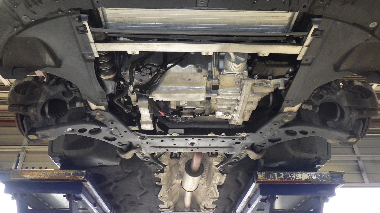 リフトアップを行い、フロント側の下廻りの様子になります。