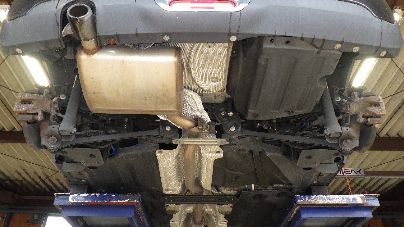 こちらも同様でリフトアップを行い、リヤ側の下廻りの様子になります。