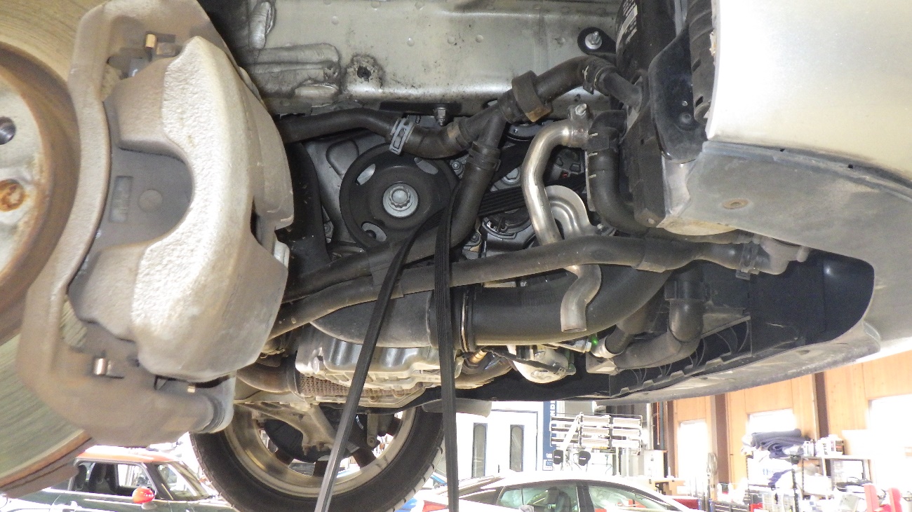 アンダーカバー、右フロントタイヤハウスカバー、ドライブベルトを外している様子になります。
