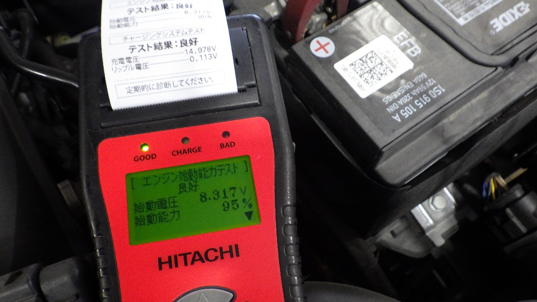 テスターにて故障コードの確認と、サービスのリセットを実施しています。