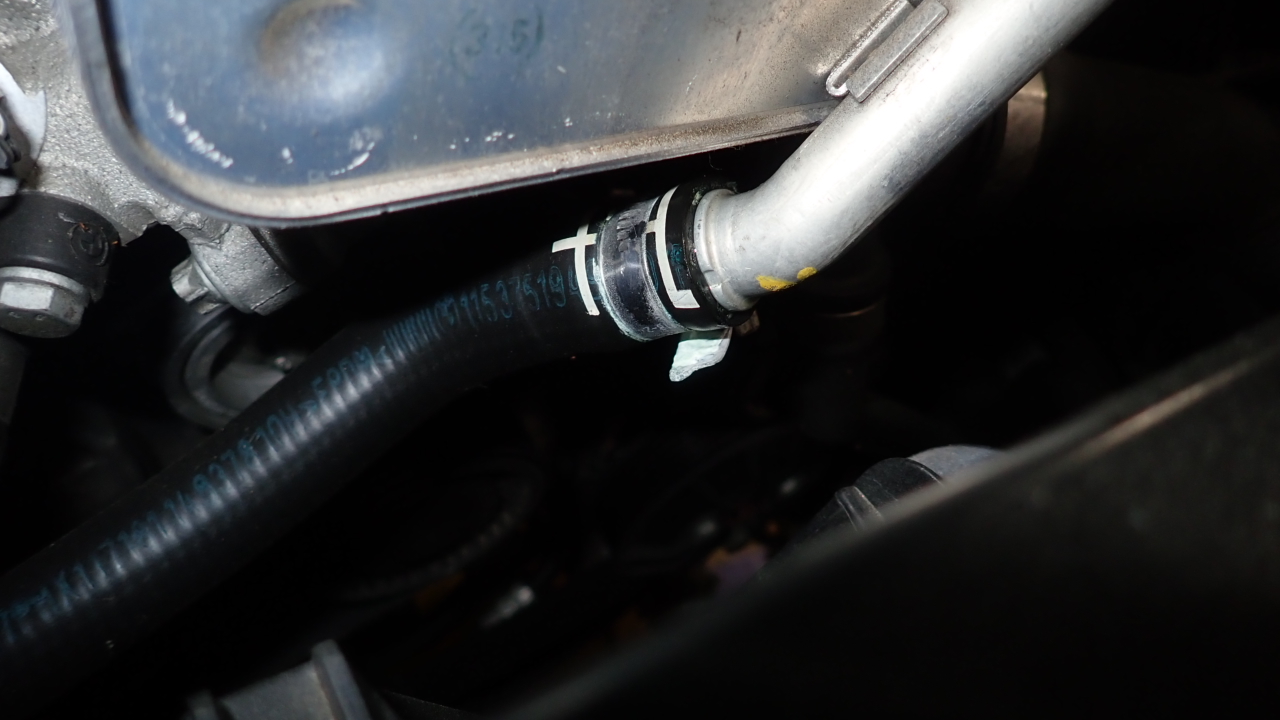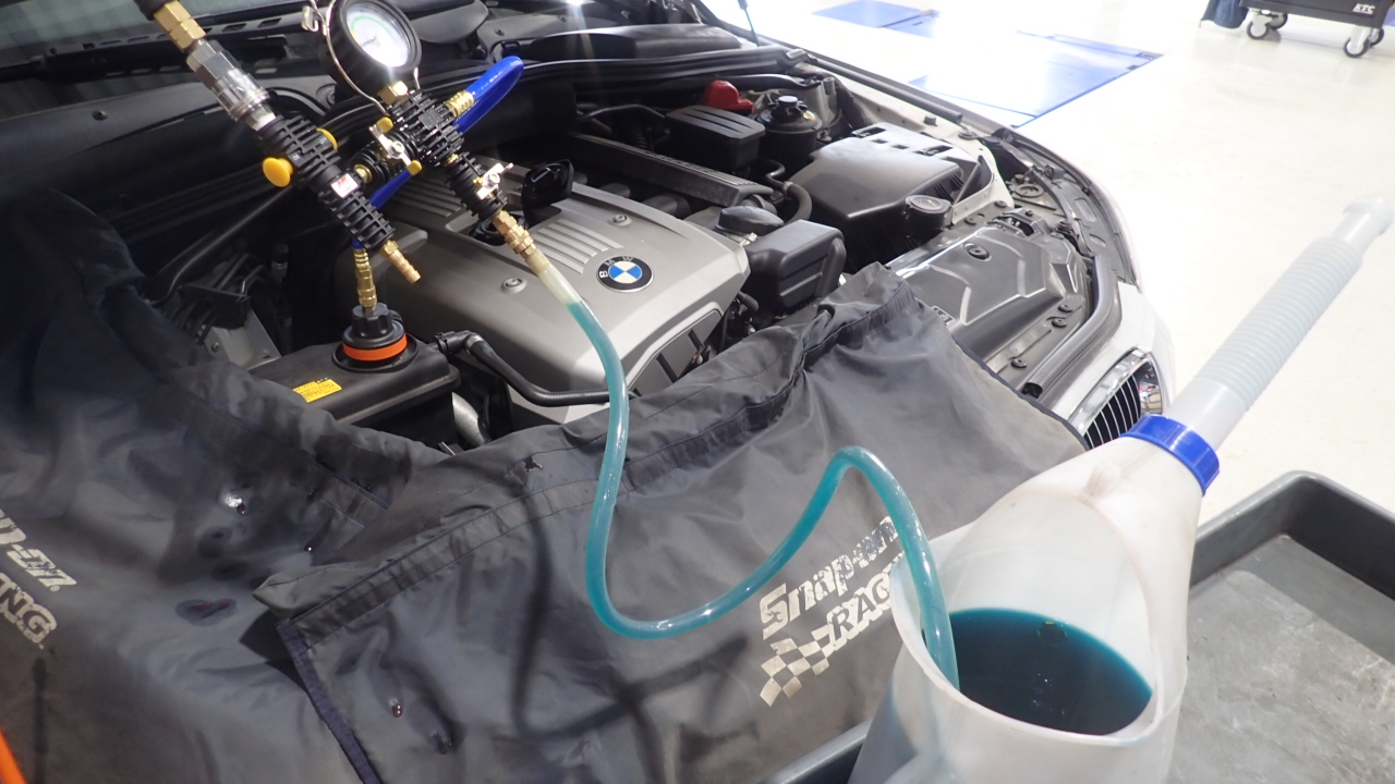 交換後、冷却系統を真空にし、新品のクーラントを補充しています。