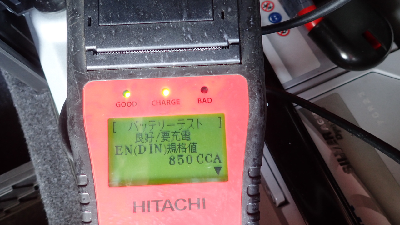 テスターにてバッテリーの点検を実施しています。
