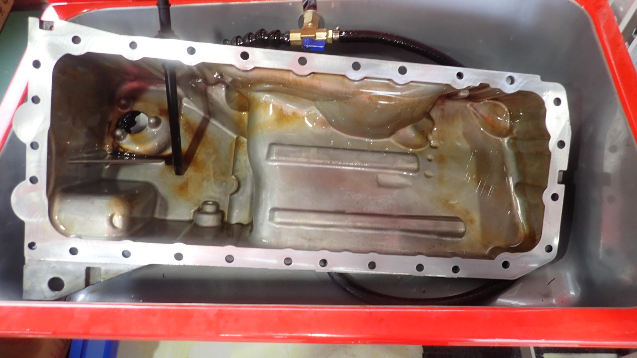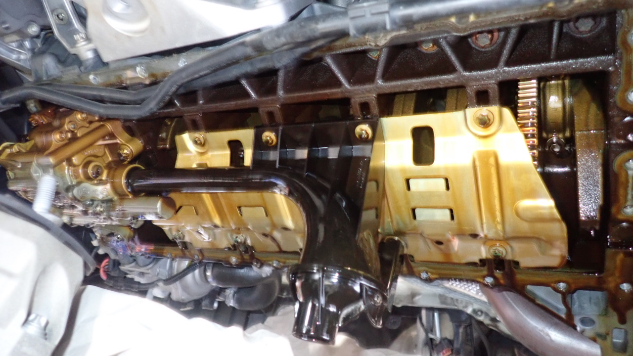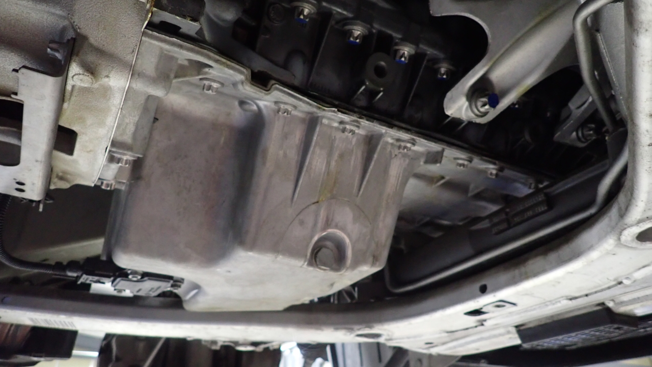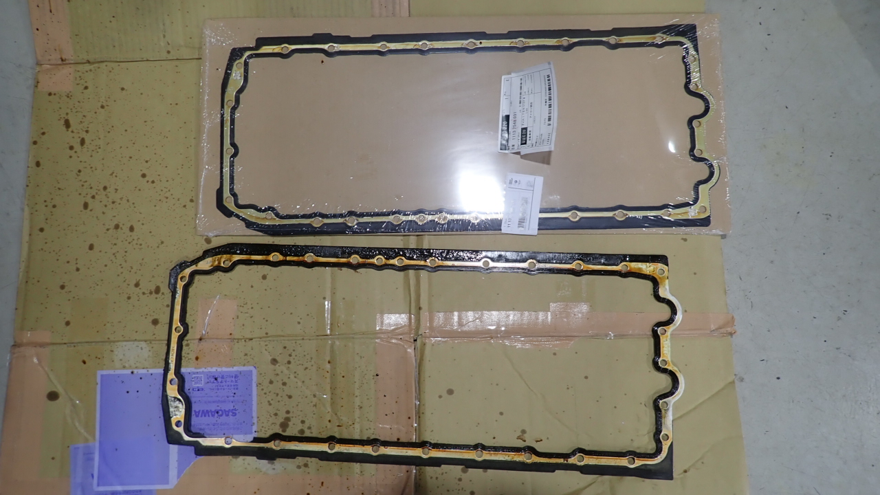 オイルパンを取り外し、ガスケットの交換を実施しています。